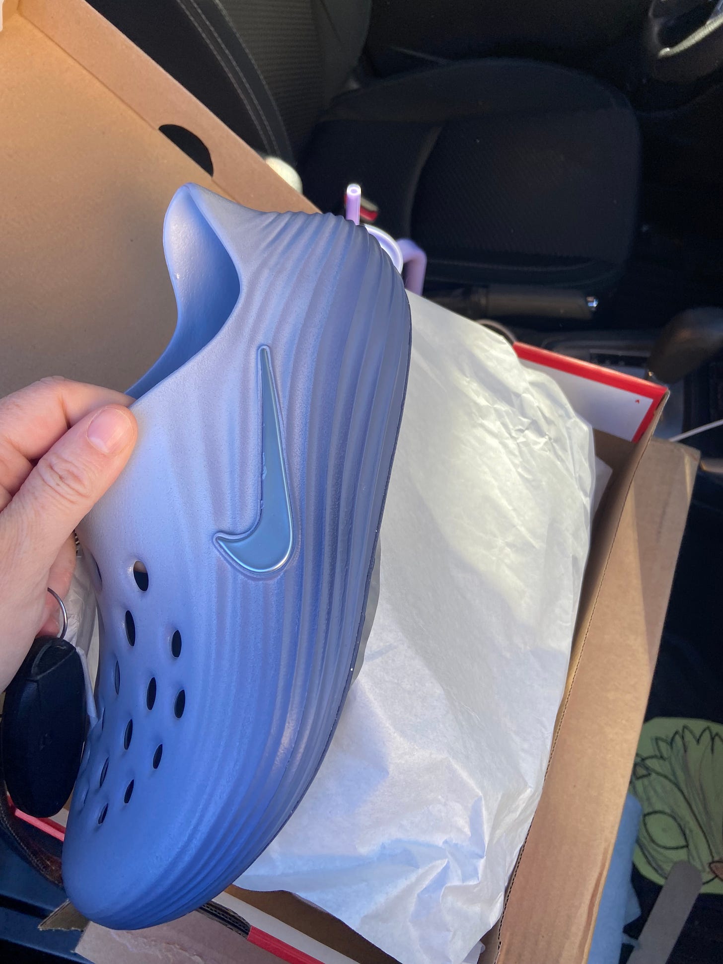 Jimmy got me two pairs of shoes for my birthday, each one more horrible than the next. I had complained about the struggle of bending over to put shoes on, but I would rather bend over a thousand times than wear these alien carapaces lol. They have been returned. Love u baby.